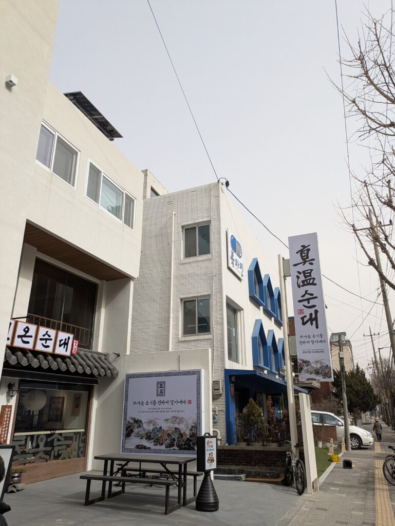 주말을 맞아 아이들과 순대국을 어디서 먹을지 찾다가 진온순대 를 발견했어요. 진온순대는 온조대왕체육관 가는 갈림길을 조금 지나서 상일동역 가는 길 쪽에 있습니다