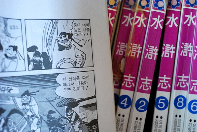 제가 먼저 본건 삼국지였지만 작가가 먼저 그리고 연재한 작품은 만화 <수호전>이라고해요. 물론 저는 삼국지를 다 읽고 수호전도 너무 재밌어서 사서 읽게 되었지요^^ 제가 살던 곳이 경상북도 영주, 영주 중에서도 한참 들어가는 면단위의 시골이었고, 주변에 사는 친구들이 잘 없어서 책을 더 많이 보기도 했던 것 같고, 며칠에 몇권씩 책을 가방에 꼭꼭 챙겨가지고 친구들에게 삼국지를 대여해주는 역할도 했던 기억이 어렴풋이 나네요 🙂