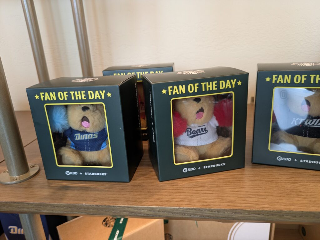 또 눈길을 끈것은 스타벅스 캐릭터인 ‘베어리스타’가 각 구단의 모자를 착용하고 있는 <베어리스타 캡 머그>와, 유니폼을 입고 응원하는 모습의 <베어리스타 키체인>도 인상적이었는데요. 특히 키링은 제 아이들 사주면 정말 좋아할 것 같지만..일단 모른척 하기로~^^;;